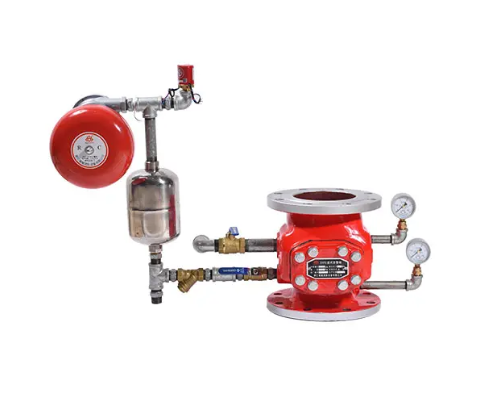 濕式報警閥是一種單向閥,只允許水流入濕式系統(tǒng)并在規(guī)定壓力流量下驅(qū)動配套部件報警。它通常配合延遲器使用,以防止因供水壓力波動、報警閥滲漏而發(fā)生誤報警。水流指示器和壓力開關(guān)等配件可以與之組合,形成濕式自動噴水滅火系統(tǒng)。